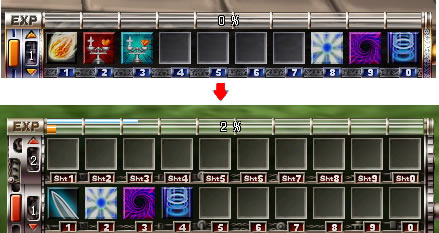 按快捷栏左侧按钮会增加俩个快捷栏,可以用( Shift+ 数字扭)使用上段登陆的快捷栏技能。